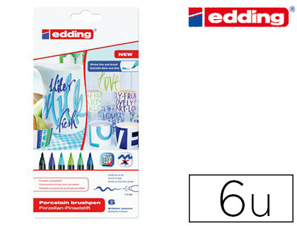 Feutre edding porcelaine e4200 céramique émaillée verre pointe pinceau fine flexible pochette 6 coloris froids
