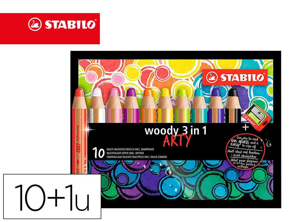 Crayon couleur stabilo woody multi talent 18 crayons 3 en 1 arty +1 pinceau rond taille 8 + 1 taille crayon