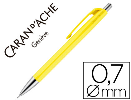 S'inspirant des couleurs, ce porte-mine de la collection 884 Infinite est conçu pour être votre compagnon idéal au quotidien. Sa forme hexagonale emblématique et ses couleurs vibrantes en résine synthétique s'accordent parfaitement avec une pointe et un bouton poussoir en chrome brillant. Que ce soit pour le dessin ou l'écriture, cet instrument d'écriture de haute qualité, fabriqué par la célèbre maison suisse Caran d'Ache, offre la précision et l'élégance recherchées par les amateurs de beaux objets et les professionnels.